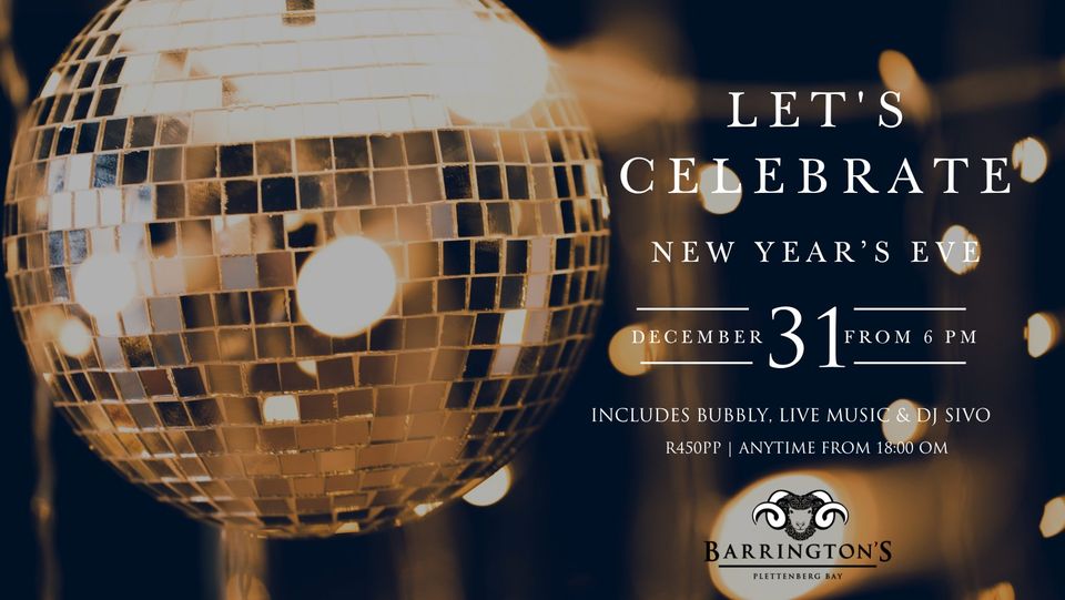 Kiss 2023 a sweet, beautiful goodbye and welcome in the New Year in style at Barrington's! Tickets are R450pp and include Live Music, DJ Sivo and Bubbly.