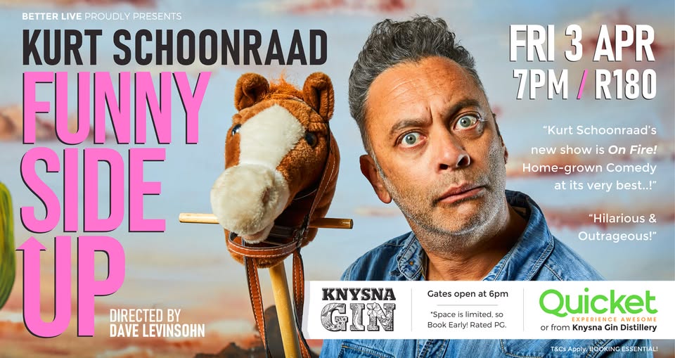 One of South Africa’s most recognisable and well-loved comedians, Kurt Schoonraad brings his brand-new stand-up show Funny Side Up to Knysna Gin for one night only.