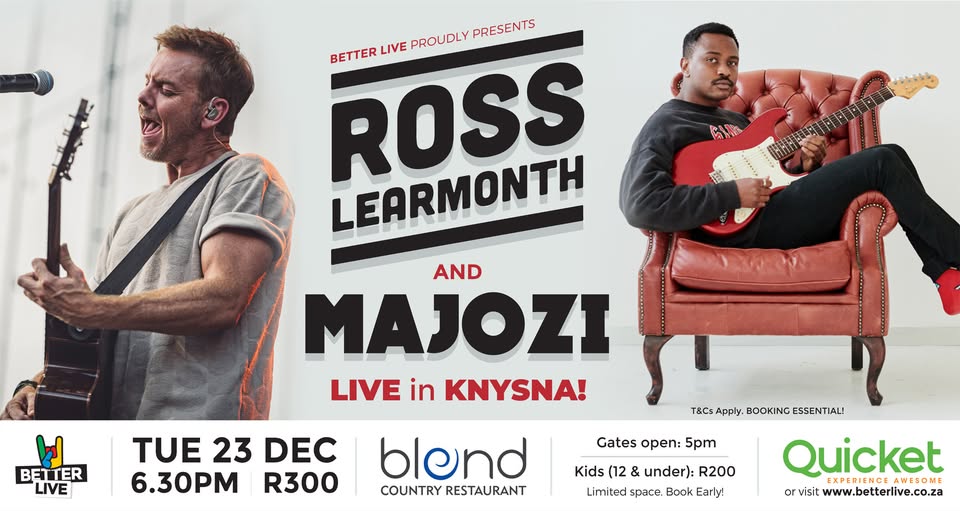 Join us for a unique and spectacular double-bill show featuring the incredible talents of Ross Learmonth and Majozi at the beautiful Blend Country Restaurant in Knysna!
