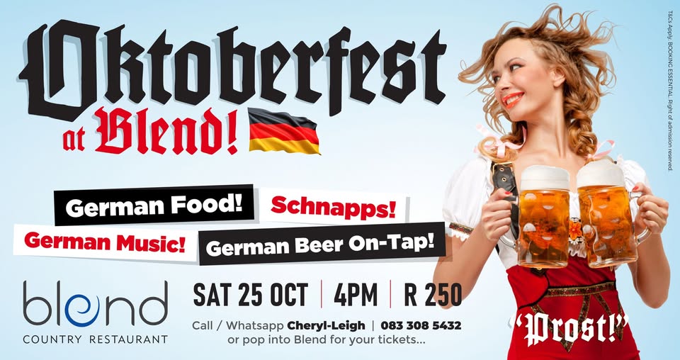 "Guten Morgen" Knysna and "Prost!" BLEND is so excited to invite you to our German Oktoberfest!