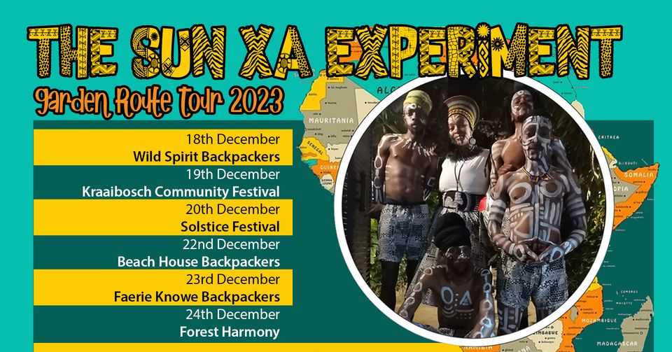 We are excited to announce The Sun Xa Experiment will be bringing their medicine music all the way from Soweto to the Garden Route for the first time! We have some awesome shows lined up for your soul.