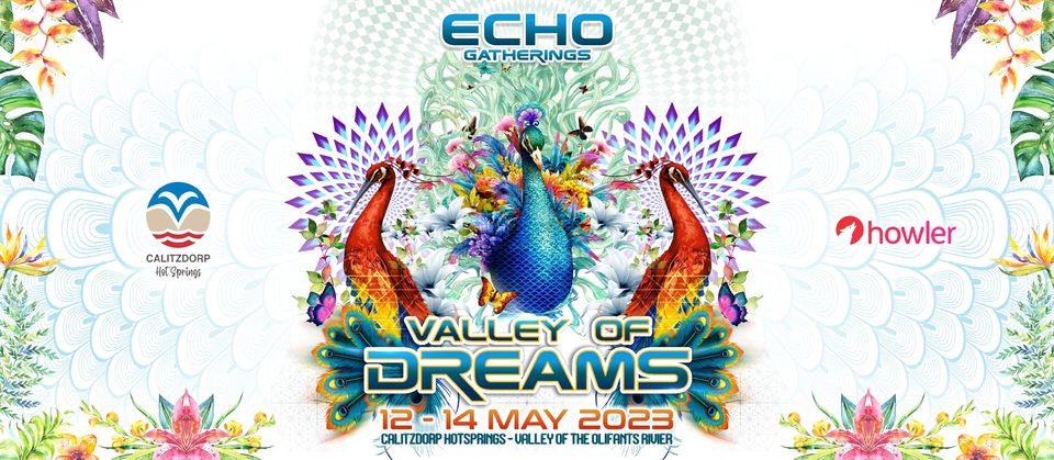 Calitzdorp Spa nestled in between the Swartberg mountains and Olifants river, plays host to Echo's Valley of Dreams. The dancefloor and play area will be set between the pools and hotsprings where one can sit relax around the lush green dancefloor or take a splash while in there dream state of Freedom..