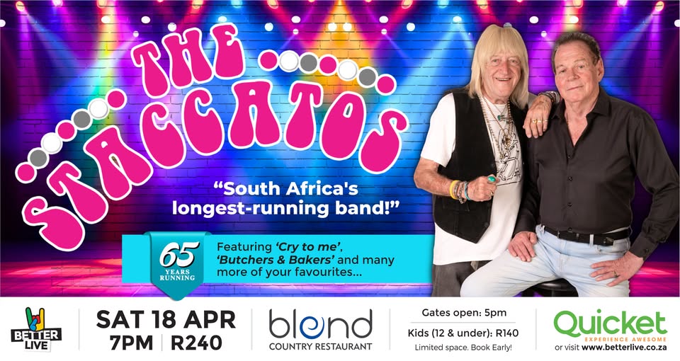 The legendary South African band The Staccatos are bringing their signature sound and high-energy performance to Reedvalley, and you don’t want to miss it!