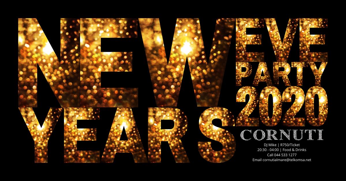New Years Eve Party 2020 at Cornuti in Plett. Food & Drinks, Live DJ, Dancefloor and a party from 8:30pm to 4am.