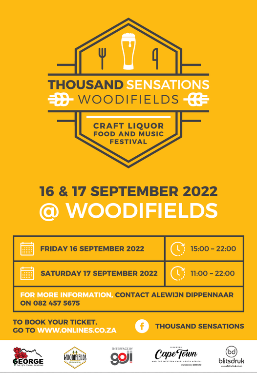 The 6th Thousand Sensations Woodifields Craft Liquor Food and Music Festival will take place 16 and 17 September 2022 on the World Famous Map of Africa. Entrance opposite entrance to NM University on the Farm Woodifields.